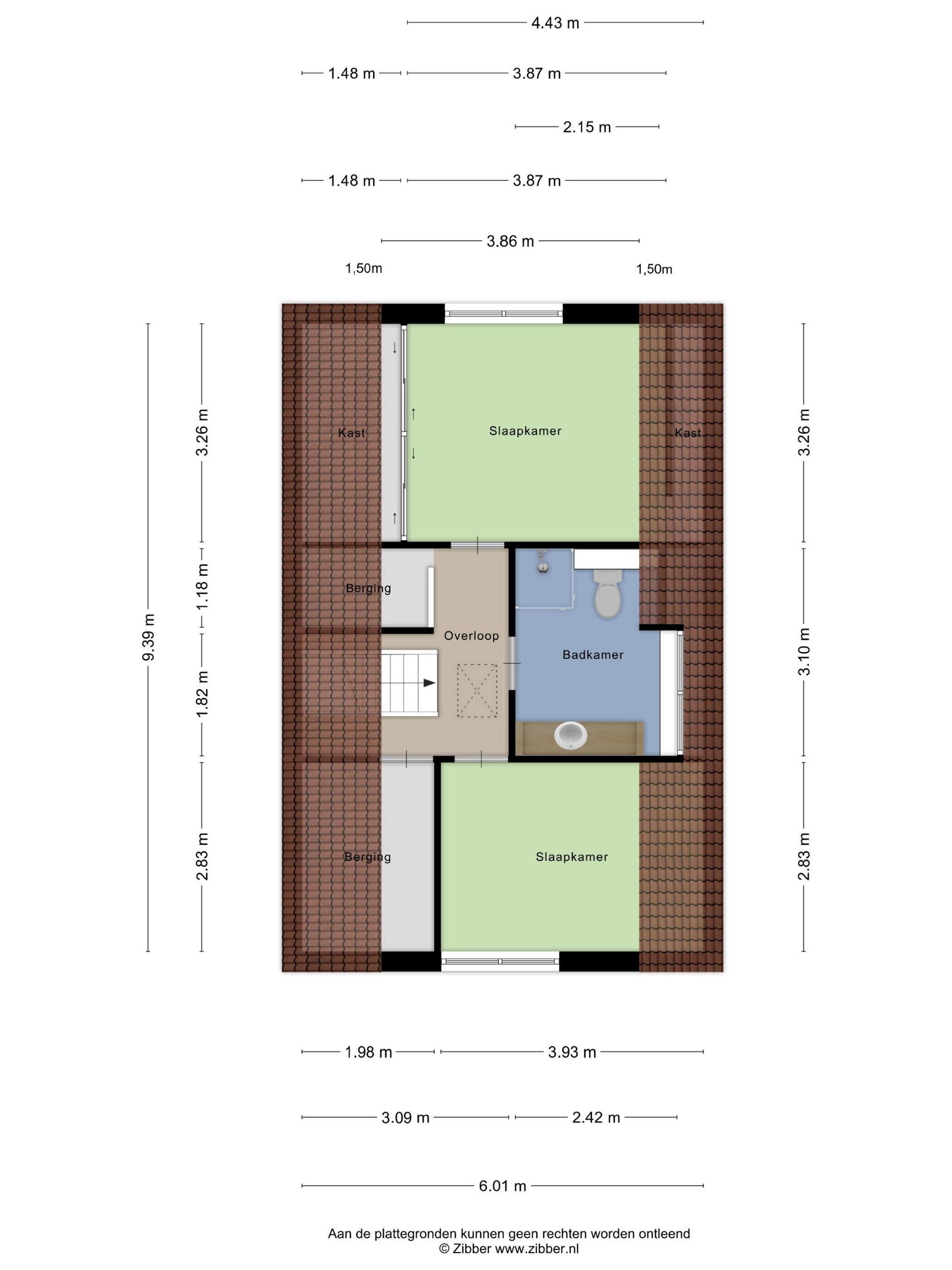 De overloop geeft toegang tot de c.v.-ruimte, twee slaapkamers, de badkamer en veel bergruimte. De badkamer is voorzien van een toilet, douchebak en vaste wastafel in badkamermeubel. Verder veel praktische bergruimte voor extra opslag. De slaapkamers meten resp. 12,5 en 11 m² en 1 daarvan is voorzien van een inbouwschuifkast.