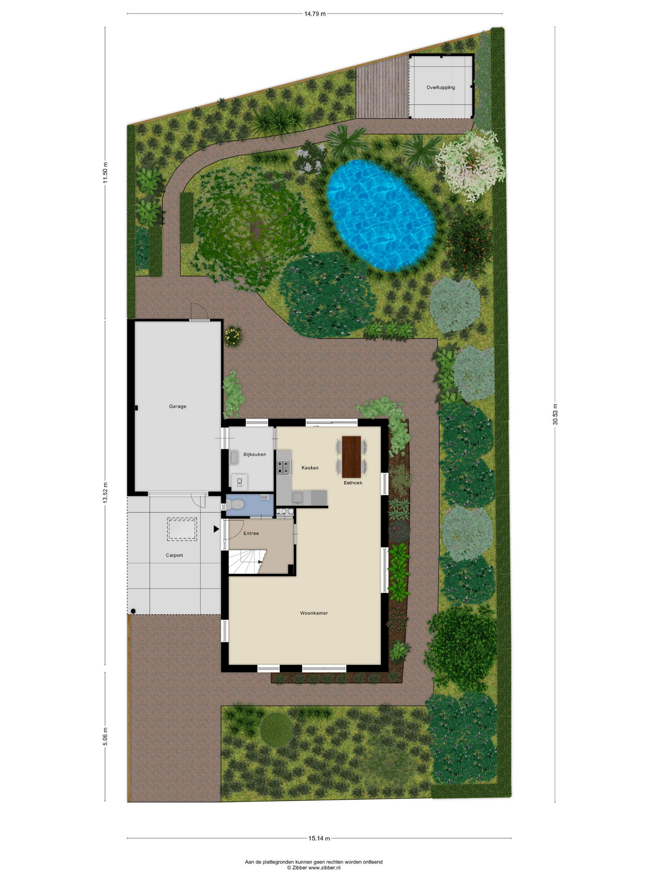 • Perceel: 414 m² + een smalle strook van de voortuin is in bruikleen van gemeente Wijchen